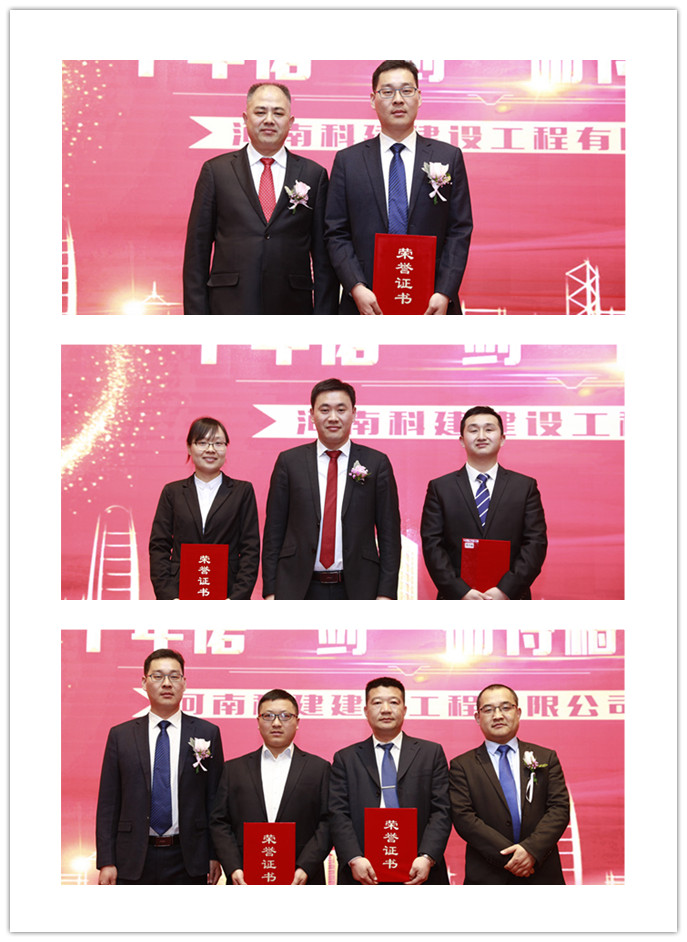2019年2月26日,河南科建建设工程有限公司2018年工作总结暨表彰大会在天鹅城国际饭店隆重召开。公司董事长袁学红、总经理李杰、副总经理黄元明、马西锋、晁岳锋、孙全明、齐含钊出席会议,参加大会还有先进材料商先进班组长、班组代表和公司员工共400余人。